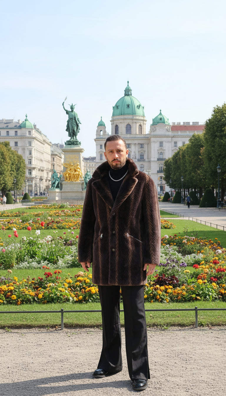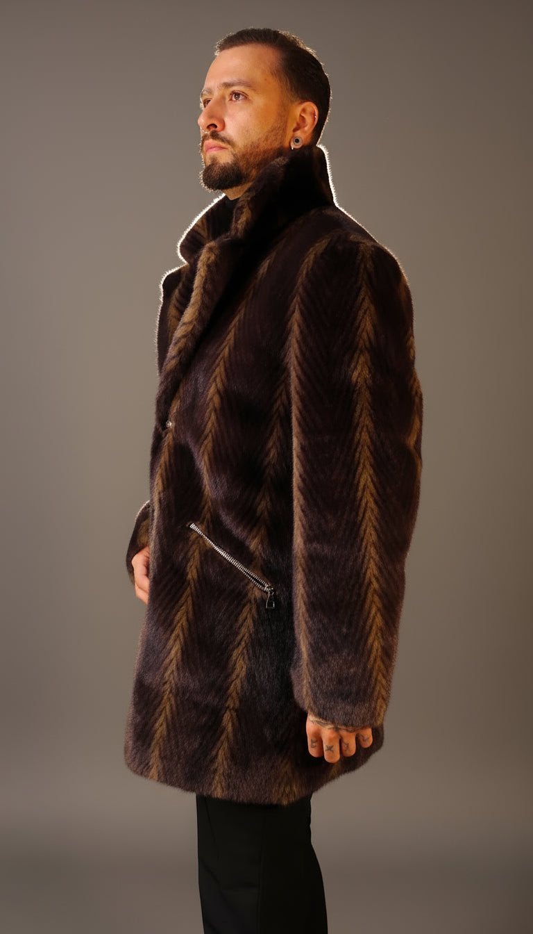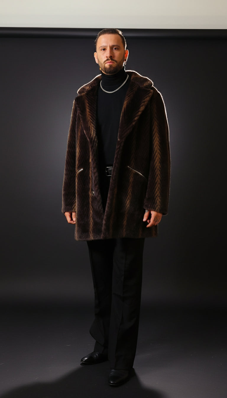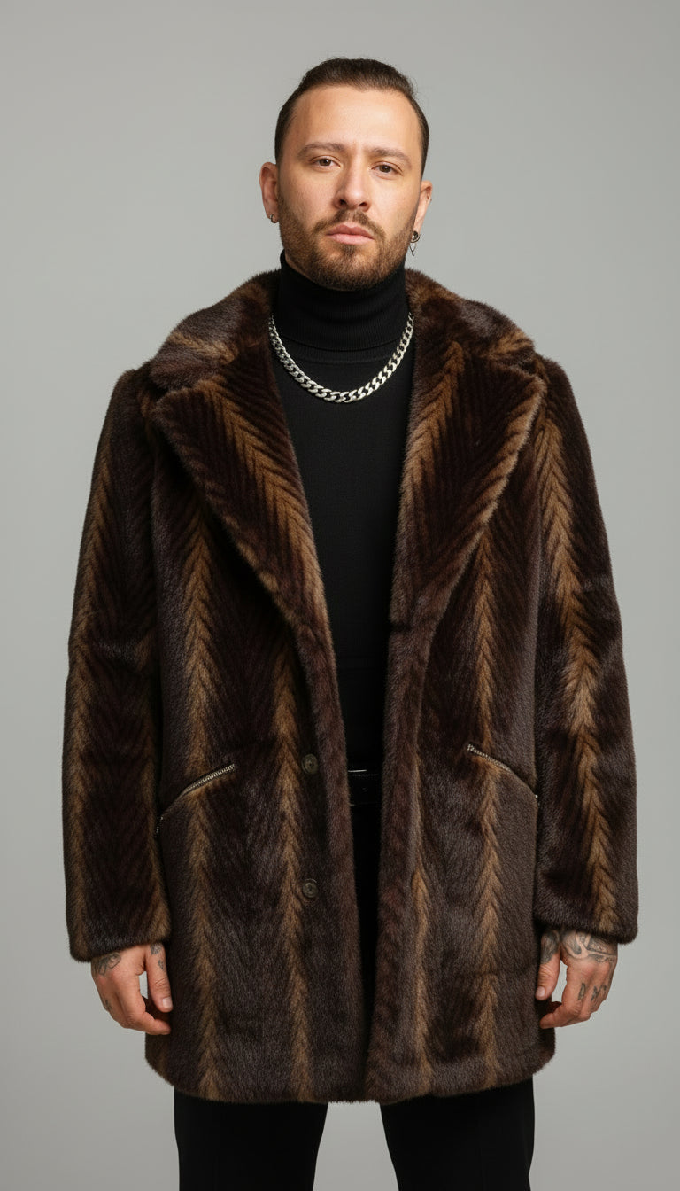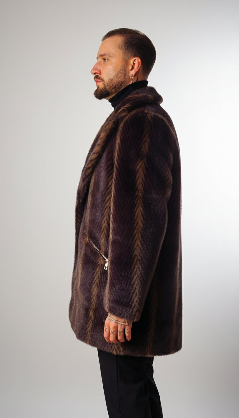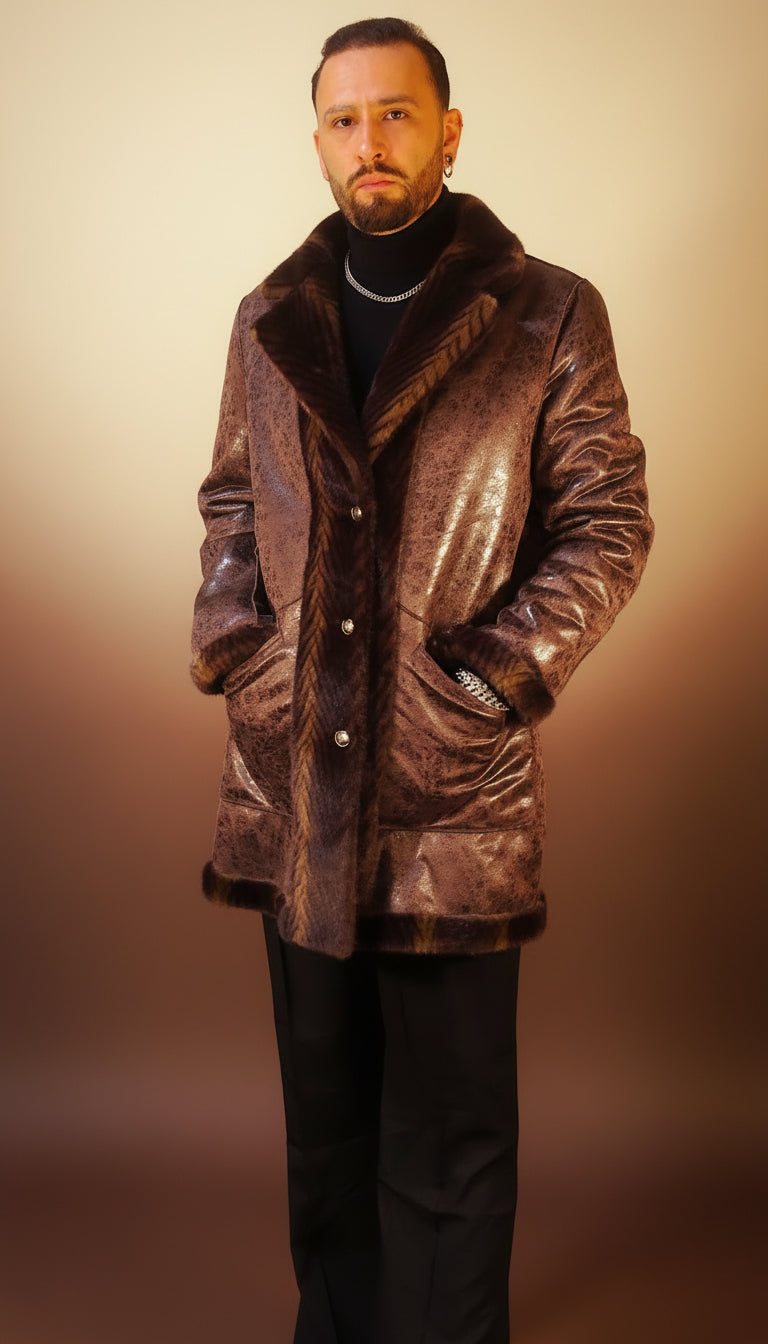 Crafted in premium faux shearling and faux fur, this coat delivers two distinct aesthetics in one piece:
