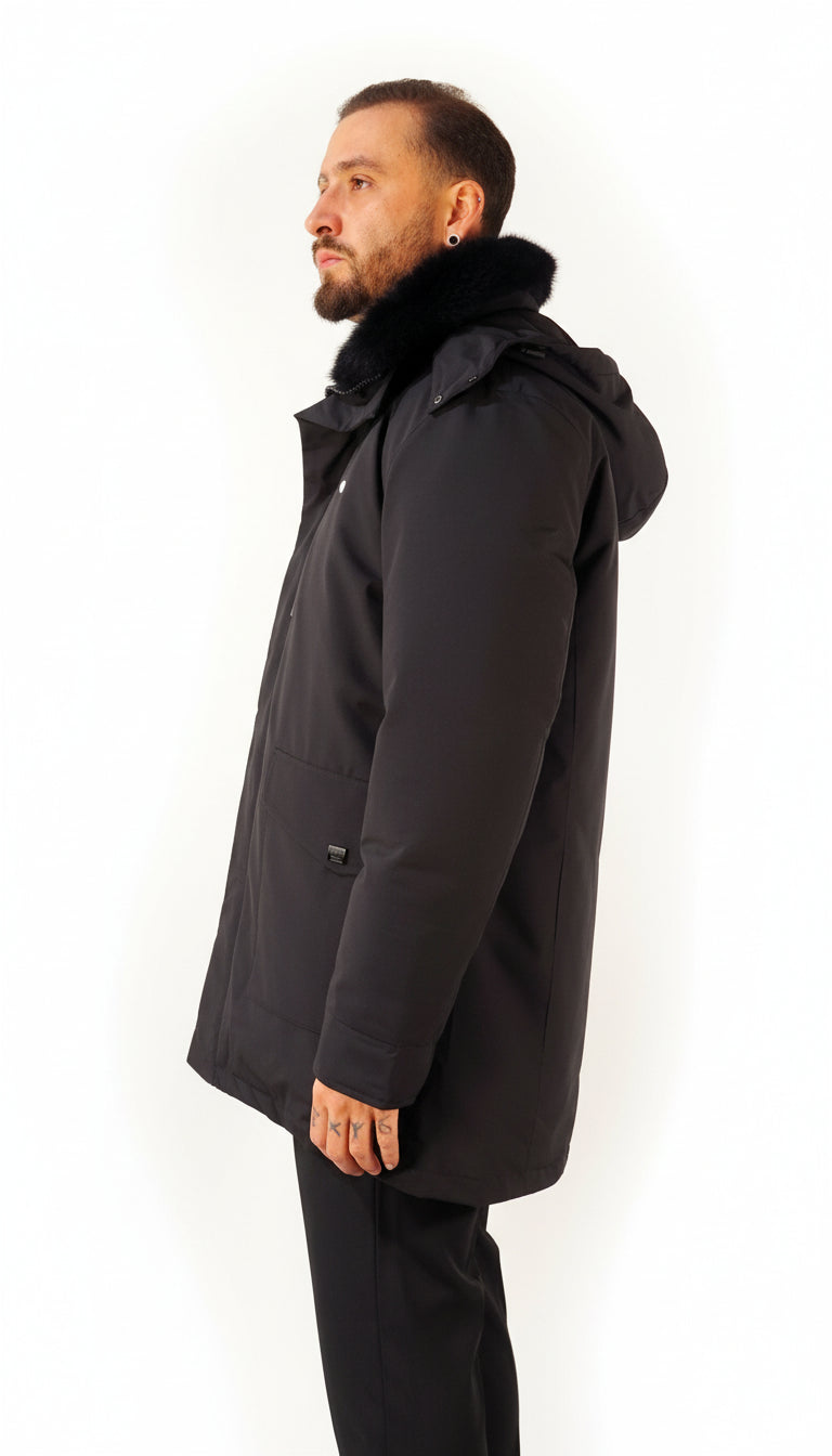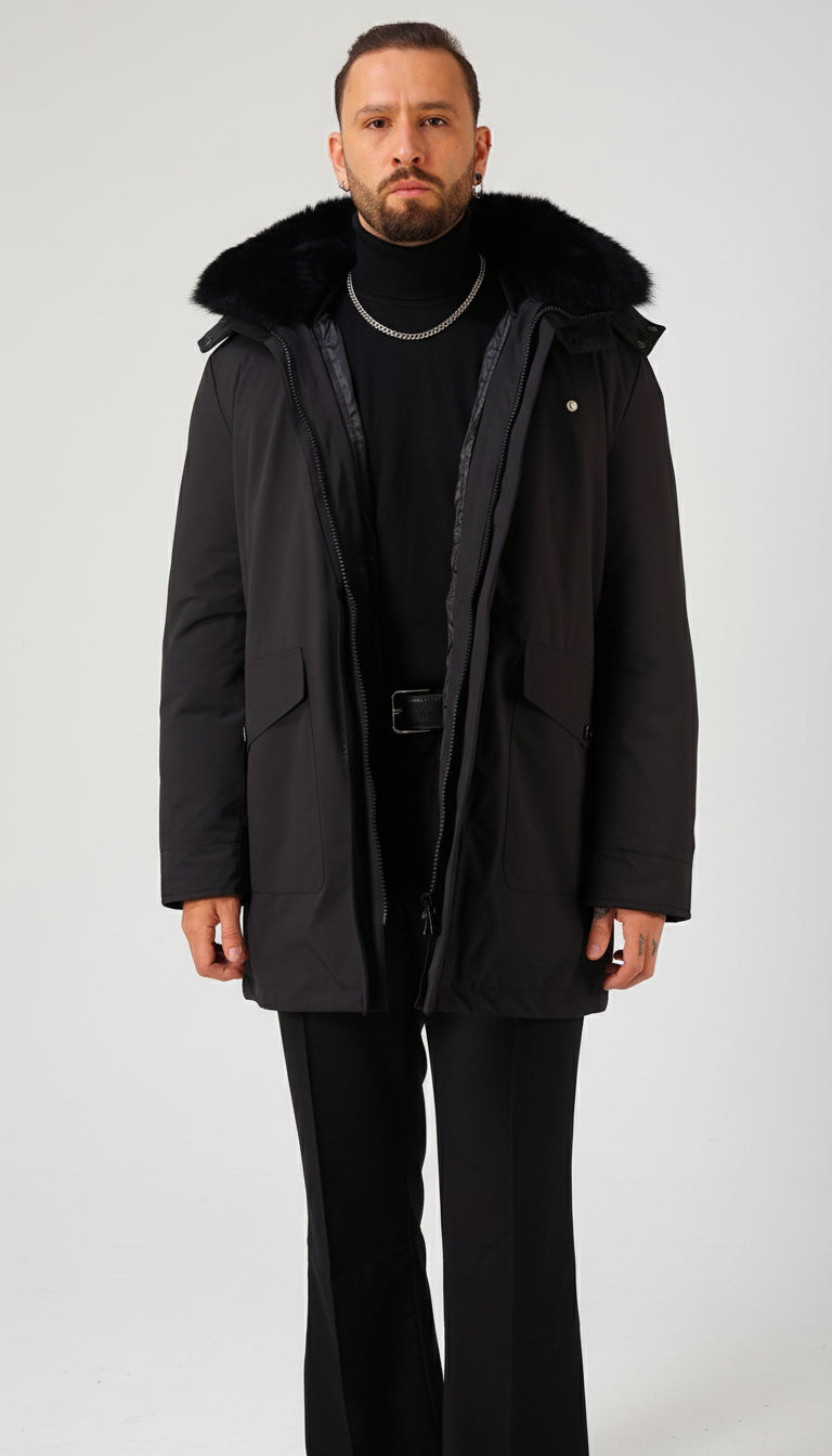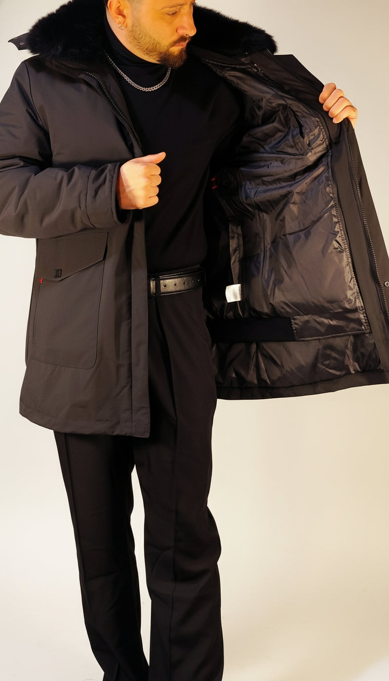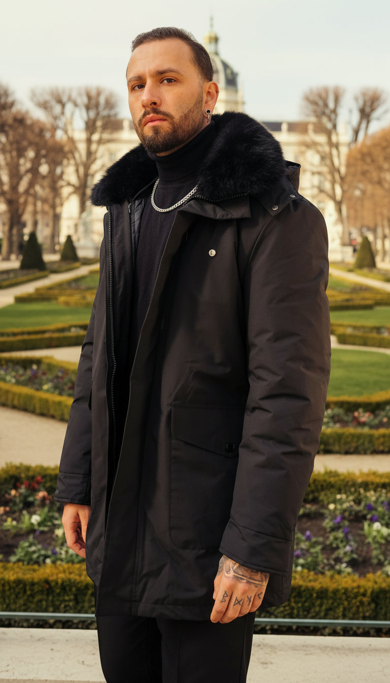 A versatile premium winter essential for men who want a stylish, functional and timeless black parka.